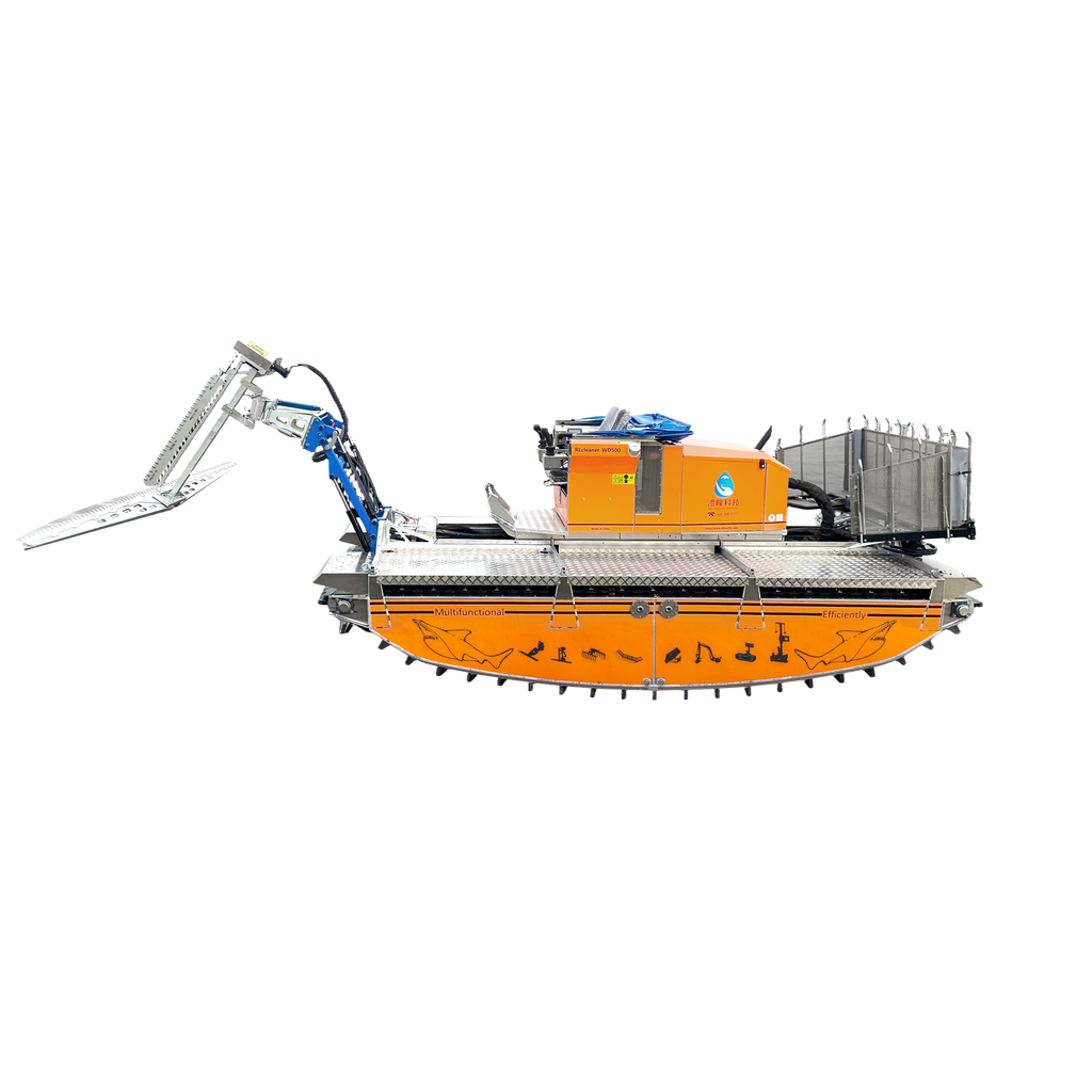 Garbage collection: The WD500 amphibious multi-functional operation vessel is equipped with a heavy-duty collection rake, which can easily collect floating debris on the shore or on the water surface and transport them to the shore or garbage trucks.